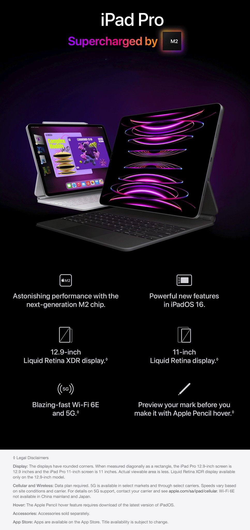 Other features of the iPad Pro include support for the Apple Pencil, which allows for precise and intuitive drawing and note-taking, as well as compatibility with the Magic Keyboard for a laptop-like typing experience.